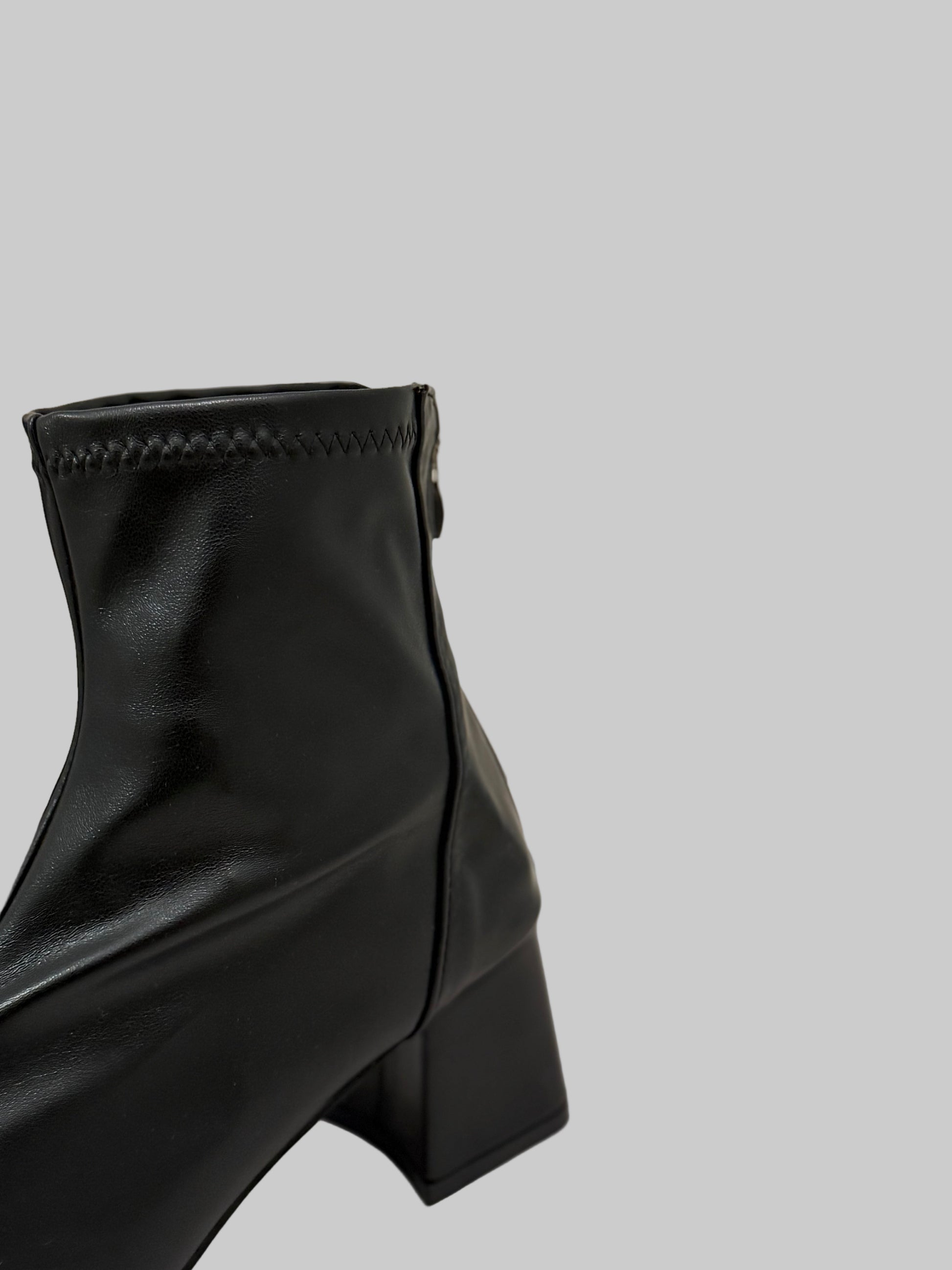 "Los Botines negros con tacón pequeño son una opción moderna y elegante para cualquier ocasión. Fabricados en cuero sintético de alta calidad, brindan estilo y comodidad a partes iguales. Perfectos para complementar cualquier atuendo con un toque de sofisticación."